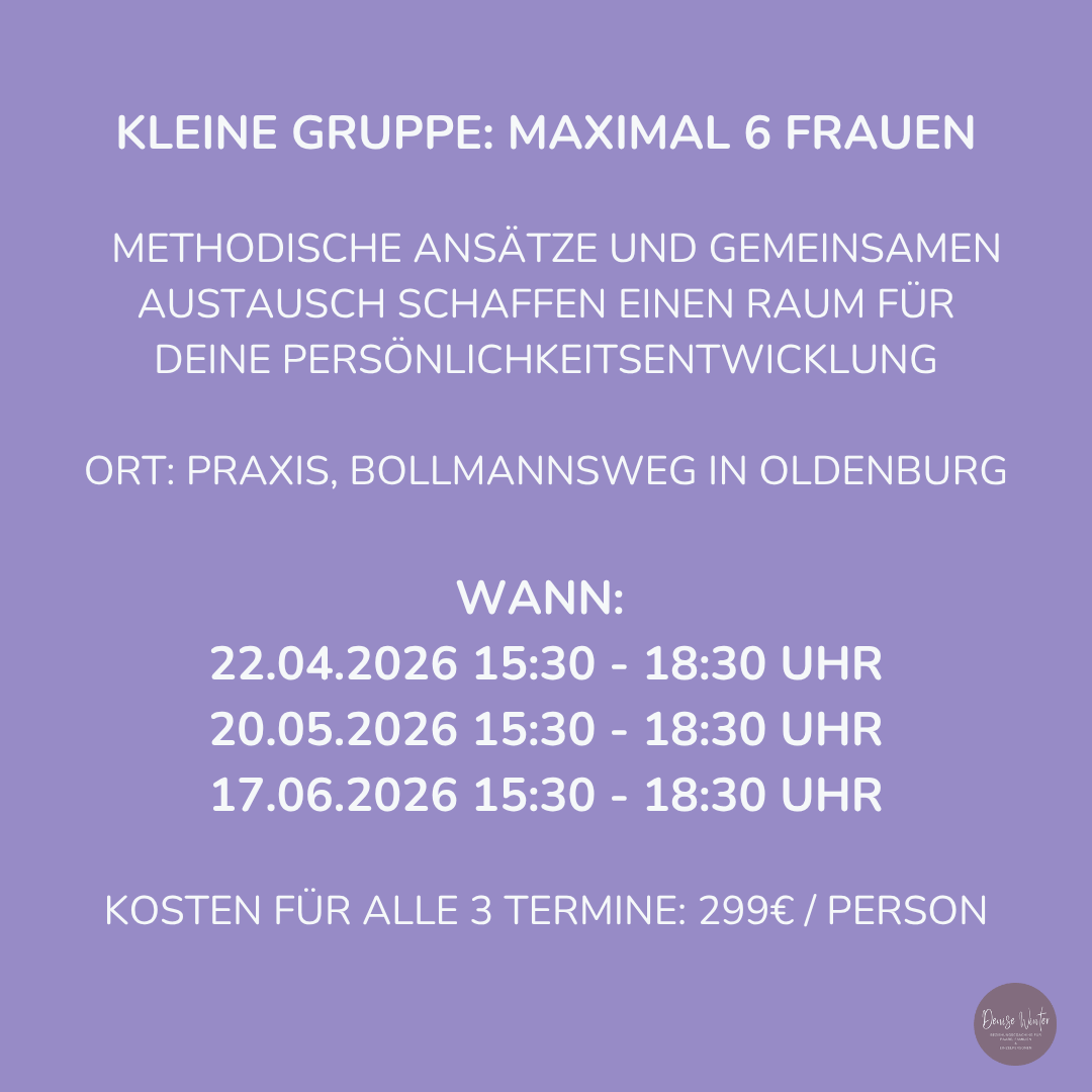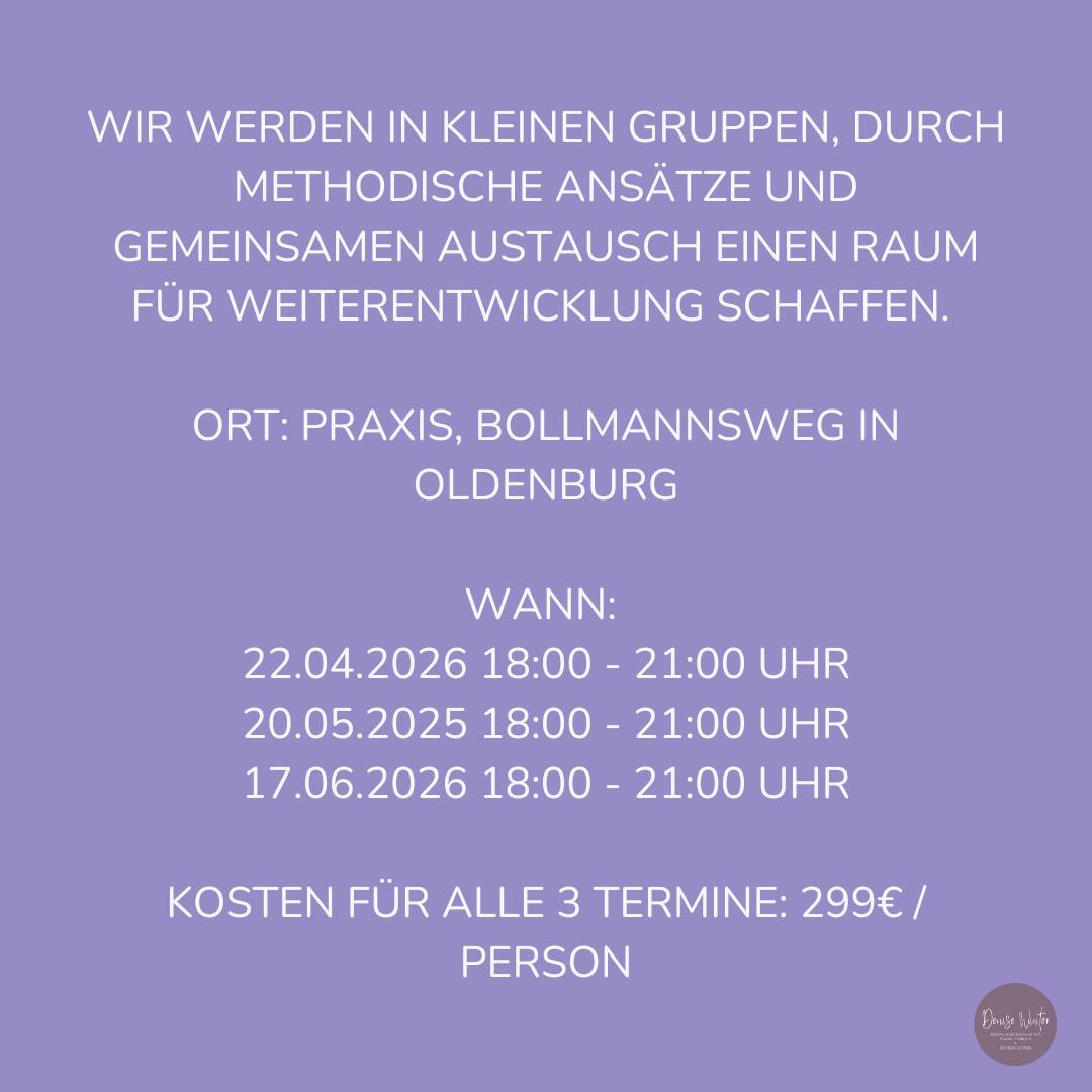 Diese Gruppe soll ein Ort sein, an dem du ankommen und dich mitteilen darfst – ohne bewertet zu werden. Ein Raum, in dem wir gemeinsam wachsen und deine Themen gesehen und gehalten werden dürfen.